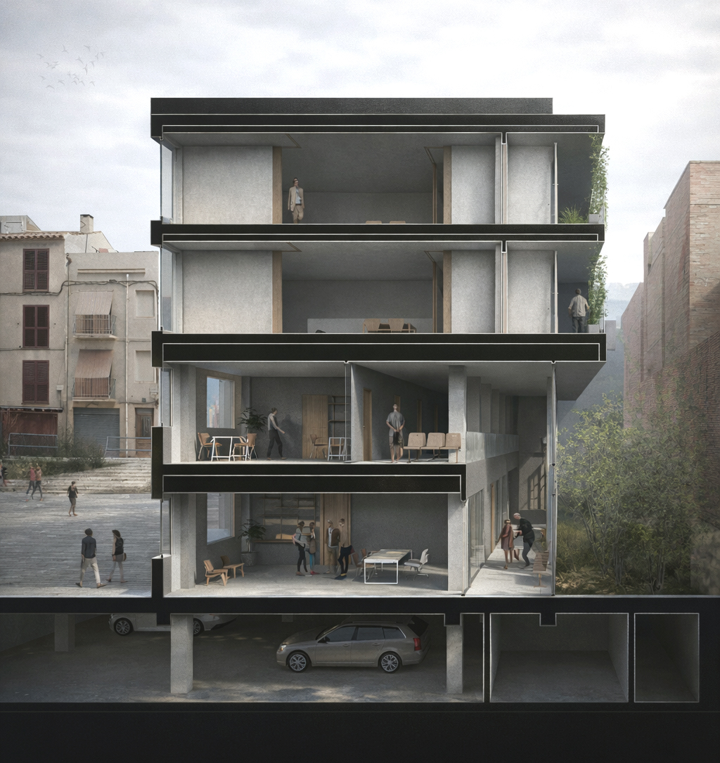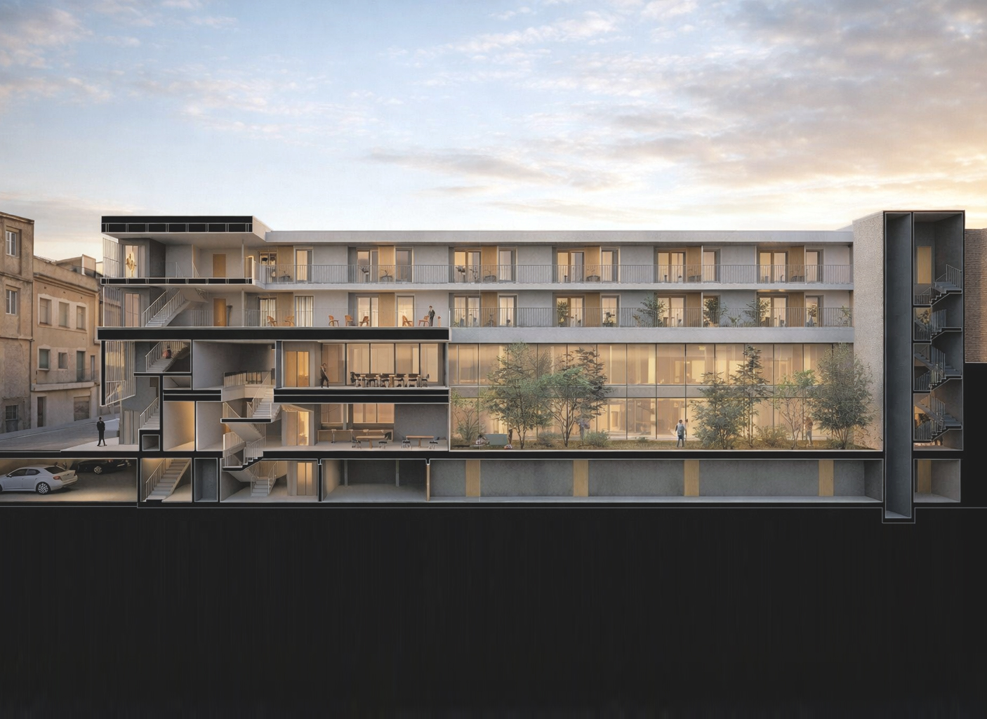 La proposta planteja un nou conjunt d’ús mixt al nucli antic de Reus que integra habitatge social, un Centre d’Atenció Primària (CAP), aparcament soterrat i espai públic, amb l’objectiu de generar una nova centralitat urbana i reforçar la vida comunitària.